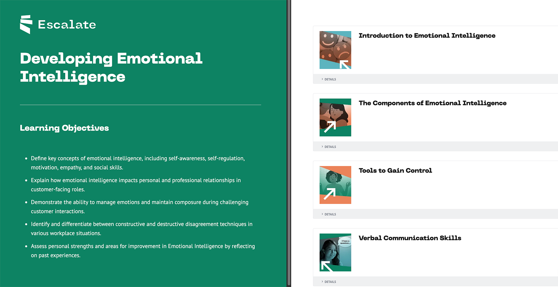 Course lesson icons for EscalateUSA