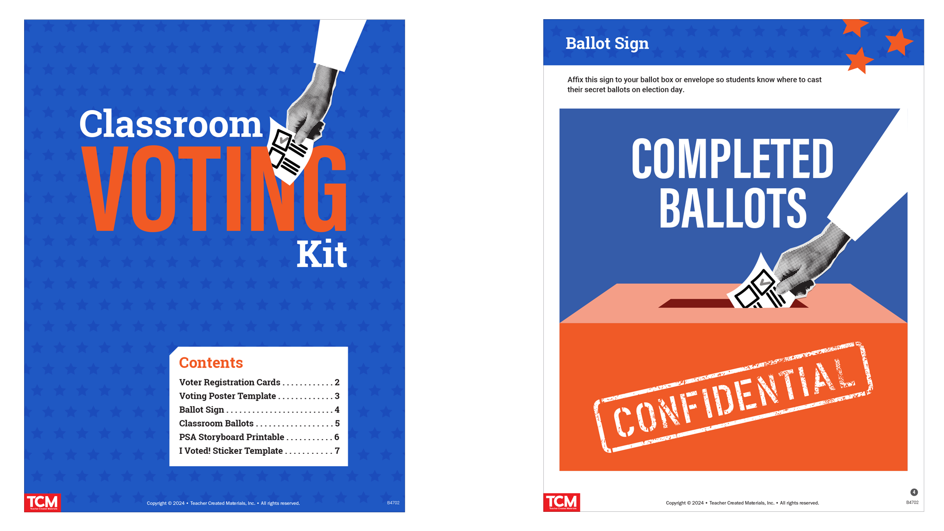 Cover and page from voting kit download for grades 2–6 (typography, layout, modification of stock art)