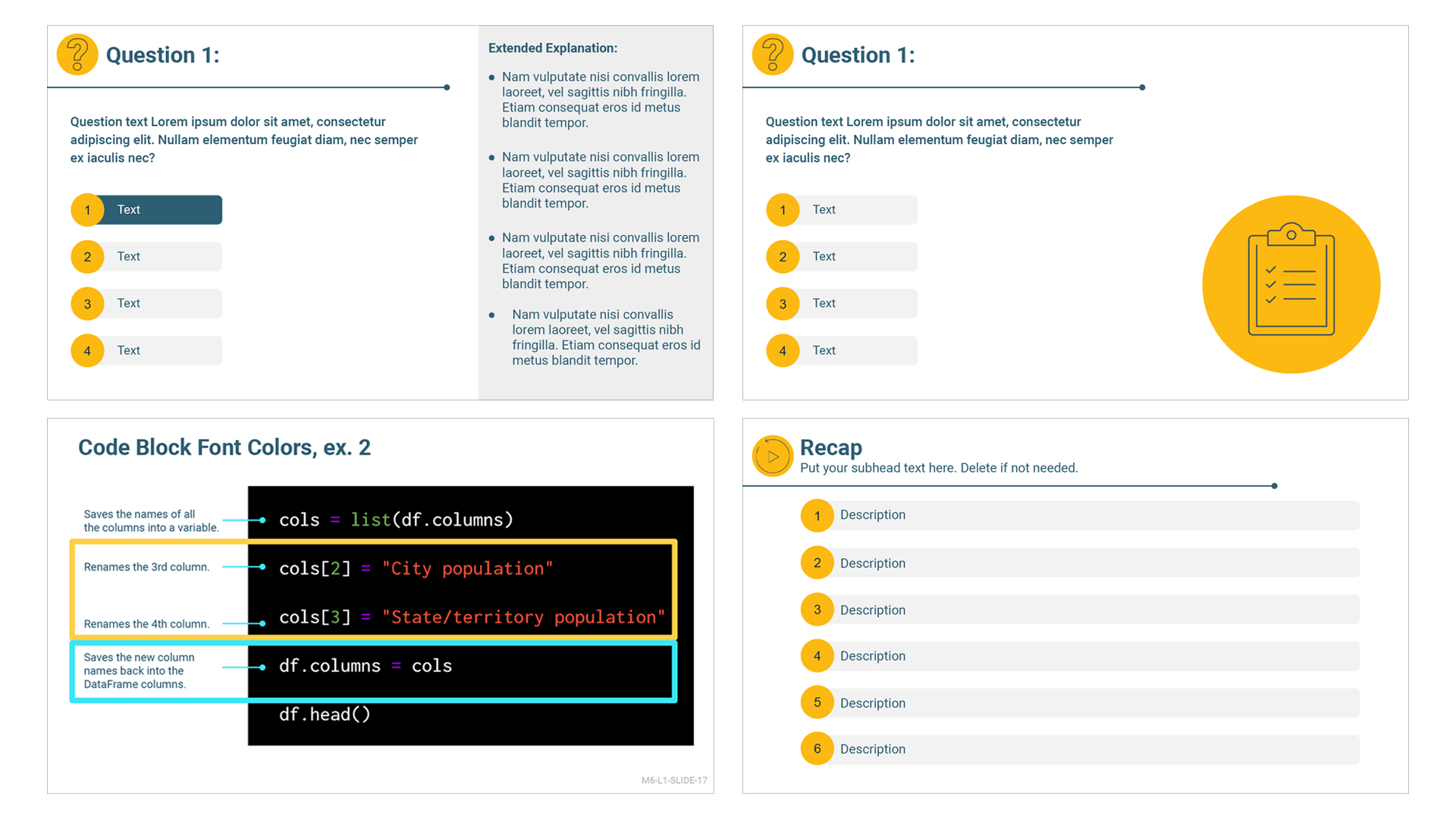 Sample course page showing course pacing and standard amount of text. Stock image modified to match brand colors